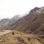 At around 2500m height, the snow started to appear on the landscape. No problem, though, the road was still clear. Well… at 2600m height, the road became a lot more uneven and harsh cobbles were spread out with a loose hand. Further more, snow and ice had started to take bigger and bigger bites of the road. So I had to realize that this way was a no go…